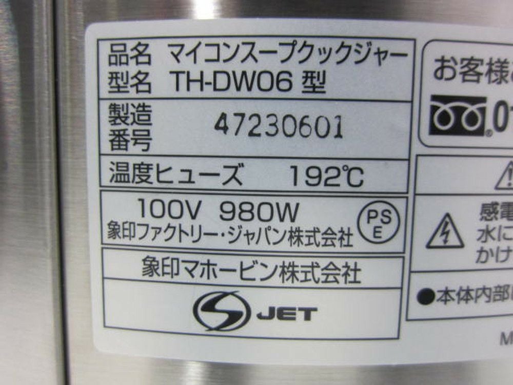 他の画像を見る 2023年製 象印マホービン マイコンスープクックジャー TH-DW06 東京町田店 中古品 単相100V 販売価格 ¥ 49,500 税込 SOLD OUT W365xD315xH385商品ランク:A 詳細を見る お気に入りに登録する