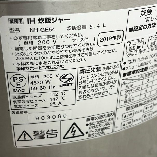 他の画像を見る 2019年製 象印 IH炊飯ジャー NH-GE54 東京足立店 中古品 単相200V 販売価格 ¥ 46,200 税込 W430xD500xH410商品ランク:A カートに入れる お気に入りに登録する