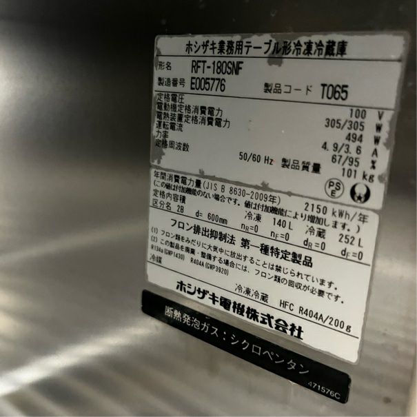 他の画像を見る 2015年製 ホシザキ 冷凍冷蔵コールドテーブル RFT-180SNF 東京足立店 中古品 単相100V 定価 ¥ 1,128,600 のところ 販売価格 ¥ 115,500 税込 SOLD OUT W1800xD600xH800商品ランク:B 詳細を見る お気に入りに登録する