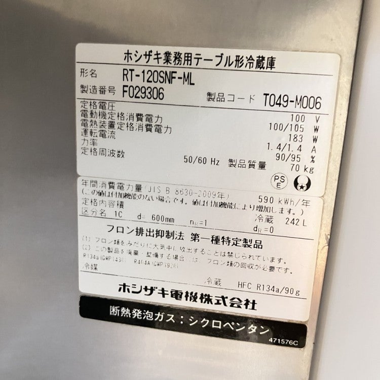 他の画像を見る 2016年製 ホシザキ テーブル形冷蔵ショーケース RTS-120STB2 愛知店 中古品 単相100V 定価 ¥ 284,900 のところ 販売価格 ¥ 74,800 税込 SOLD OUT W1200xD450xH800商品ランク:B 詳細を見る お気に入りに登録する