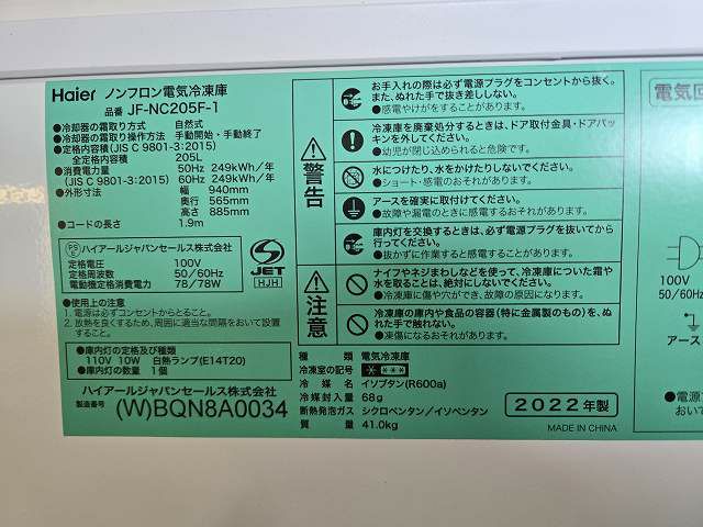 他の画像を見る 2022年製 ハイアール 冷凍ストッカー JF-NC205F-1 愛知店 中古品 単相100V 販売価格 ¥ 27,500 税込 SOLD OUT W940xD565xH885商品ランク:B 詳細を見る お気に入りに登録する