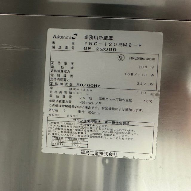 他の画像を見る 2016年製 フクシマガリレイ 冷蔵コールドテーブル YRC-120RM2-F ※備考欄必読 東京足立店 中古品 単相100V 定価 ¥ 707,300 のところ 販売価格 ¥ 44,000 税込 SOLD OUT W1200xD600xH800商品ランク:C 詳細を見る お気に入りに登録する