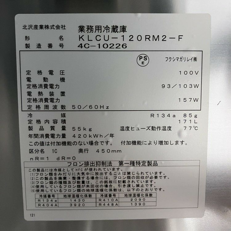 他の画像を見る 2024年製 北沢産業 冷蔵コールドテーブル KLCU-120RM2-F 東京町田店 中古品 単相100V 販売価格 ¥ 104,500 税込 SOLD OUT W1200xD450xH800商品ランク:B 詳細を見る お気に入りに登録する