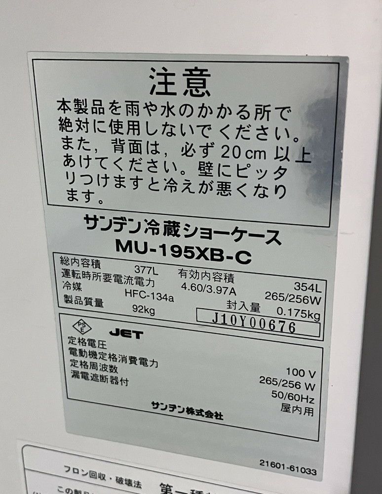 他の画像を見る 2012年製 パナソニック 冷蔵ショーケース SMR-SU150L 大阪店 中古品 単相100V 定価 ¥ 365,200 のところ 販売価格 ¥ 24,200 税込 SOLD OUT W600xD635xH1762商品ランク:C 詳細を見る お気に入りに登録する