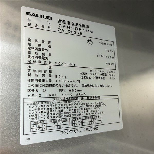 他の画像を見る 2022年製 フクシマガリレイ 縦型冷凍冷蔵庫 GRN-061PM 大阪店 中古品 単相100V 定価 ¥ 1,354,100 のところ 販売価格 ¥ 176,000 税込 SOLD OUT W610xD650xH1950商品ランク:B 詳細を見る お気に入りに登録する