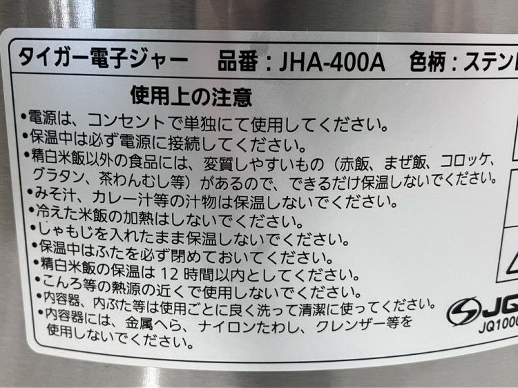 他の画像を見る 2022年製 タイガー 電子保温ジャー JHA-400A 東京町田店 中古品 単相100V 販売価格 ¥ 16,500 税込 SOLD OUT W435xD358xH270商品ランク:B 詳細を見る お気に入りに登録する