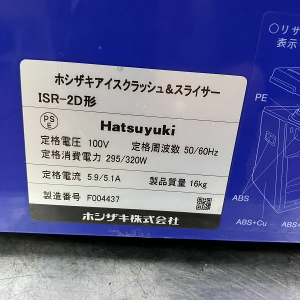 他の画像を見る 2016年製 ホシザキ アイスクラッシュ&スライサー ISR-2D 大阪店 中古品 単相100V 定価 ¥ 189,200 のところ 販売価格 ¥ 48,400 税込 SOLD OUT W306xD421xH429商品ランク:B 詳細を見る お気に入りに登録する