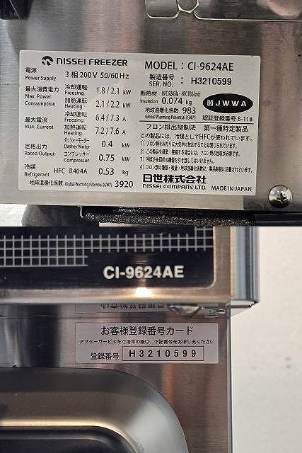 他の画像を見る 2021年製 日世 ソフトクリームサーバー CI-9624AE 愛知店 中古品 三相200V 販売価格 ¥ 528,000 税込 W298xD739xH949商品ランク:B カートに入れる お気に入りに登録する