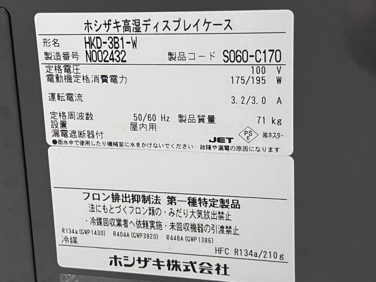 他の画像を見る 2023年製 ホシザキ 高湿ディスプレイケース HKD-3B1-W 東京町田店 中古品 単相100V 販売価格 ¥ 209,000 税込 SOLD OUT W895xD477xH730商品ランク:B 詳細を見る お気に入りに登録する