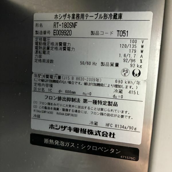 他の画像を見る 2022年製 ホシザキ 冷蔵コールドテーブル RT-150SNG-1-ML 大阪店 中古品 単相100V 定価 ¥ 974,600 のところ 販売価格 ¥ 148,500 税込 SOLD OUT W1500xD600xH800商品ランク:B 詳細を見る お気に入りに登録する