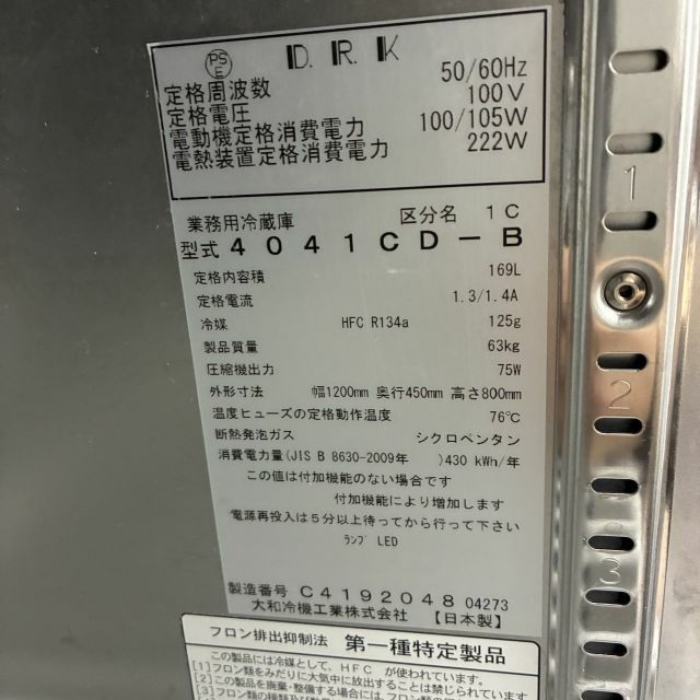 他の画像を見る 2023年製 大和冷機 冷蔵コールドテーブル 4041CD-B 大阪店 中古品 単相100V 販売価格 ¥ 117,700 税込 SOLD OUT W1200xD450xH800商品ランク:B 詳細を見る お気に入りに登録する