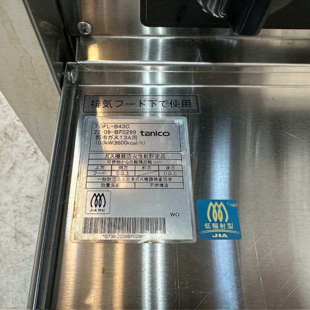 他の画像を見る 2022年製 タニコー ガスフライヤー TGFL-B43C 東京足立店 中古品 都市ガス 定価 ¥ 228,800 のところ 販売価格 ¥ 95,700 税込 SOLD OUT W430xD600xH850商品ランク:B 詳細を見る お気に入りに登録する