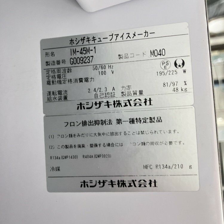 他の画像を見る 2017年製 ホシザキ 45kg製氷機 IM-45M-1 東京町田店 中古品 単相100V 販売価格 ¥ 148,500 税込 SOLD OUT W630xD450xH800商品ランク:C 詳細を見る お気に入りに登録する