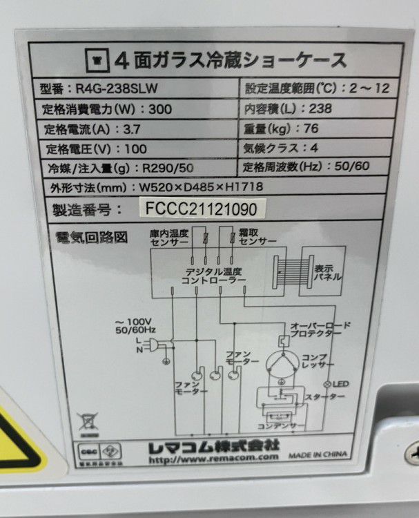 他の画像を見る 2021年製 レマコム 4面ガラス冷蔵ショーケース R4G-238SLW 東京町田店 中古品 単相100V 販売価格 ¥ 99,000 税込 SOLD OUT W520xD485xH1718商品ランク:B 詳細を見る お気に入りに登録する