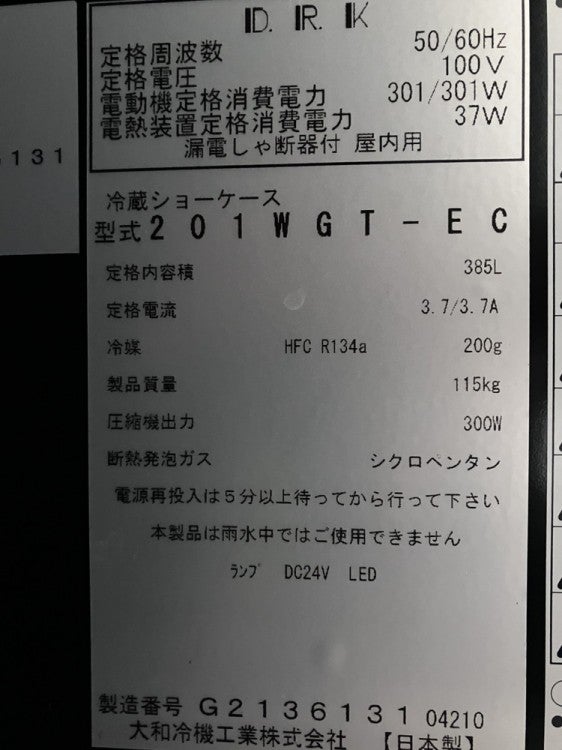 他の画像を見る 2020年製 大和冷機 ワインセラー 201WGT-EC 東京町田店 中古品 単相100V 販売価格 ¥ 189,750 税込 SOLD OUT W600xD650xH1960商品ランク:A 詳細を見る お気に入りに登録する
