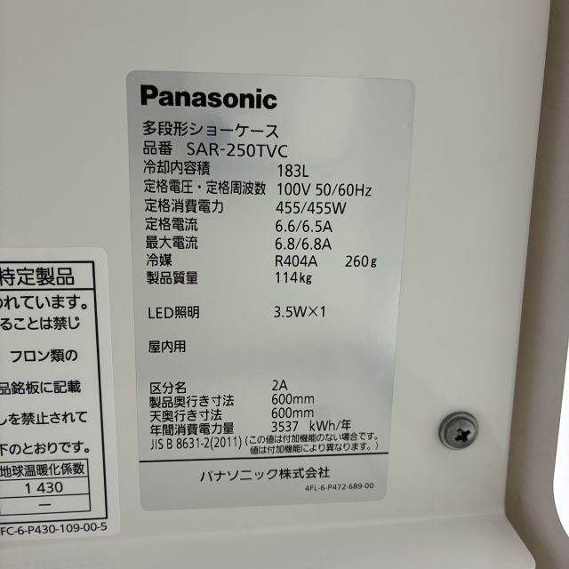 他の画像を見る 2025年製 パナソニック オープン多段冷蔵ショーケース SAR-250TVC 大阪店 中古品 単相100V 定価 ¥ 944,900 のところ 販売価格 ¥ 253,000 税込 SOLD OUT W600xD600xH1500商品ランク:A 詳細を見る お気に入りに登録する