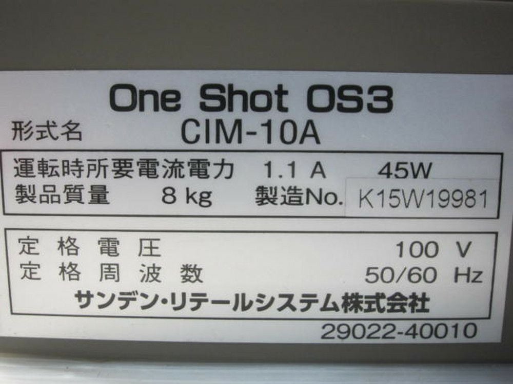 他の画像を見る 2016年製 サンデン ワンショットマシン(3) CIM-10A 大阪店 中古品 単相100V 販売価格 ¥ 40,700 税込 SOLD OUT W255xD286xH515商品ランク:B 詳細を見る お気に入りに登録する