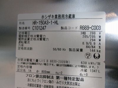 他の画像を見る 2023年製 ホシザキ 縦型冷蔵庫 HR-150A3-1-ML 愛知店 中古品 三相200V 定価 ¥ 1,677,500 のところ 販売価格 ¥ 190,300 税込 SOLD OUT W1500xD800xH1910商品ランク:A 詳細を見る お気に入りに登録する