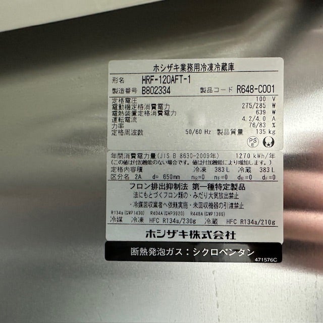 他の画像を見る 2015年製 ホシザキ 縦型冷凍冷蔵庫 HRF-120ZT 東京町田店 中古品 単相100V 販売価格 ¥ 88,000 税込 SOLD OUT W1200xD650xH1890商品ランク:B 詳細を見る お気に入りに登録する