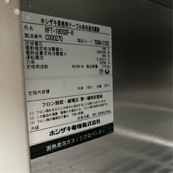他の画像を見る 2013年製 ホシザキ 冷凍冷蔵コールドテーブル RFT-180SDF-R 東京足立店 中古品 単相100V 販売価格 ¥ 104,500 税込 SOLD OUT W1800xD750xH800商品ランク:A 詳細を見る お気に入りに登録する