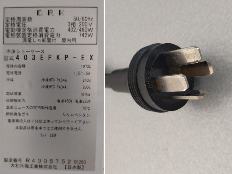 他の画像を見る 2023年製 大和冷機 リーチイン冷凍ショーケース 403EFKP-EX 東京町田店 中古品 三相200V 販売価格 ¥ 275,000 税込 W1200xD800xH1905商品ランク:B カートに入れる お気に入りに登録する