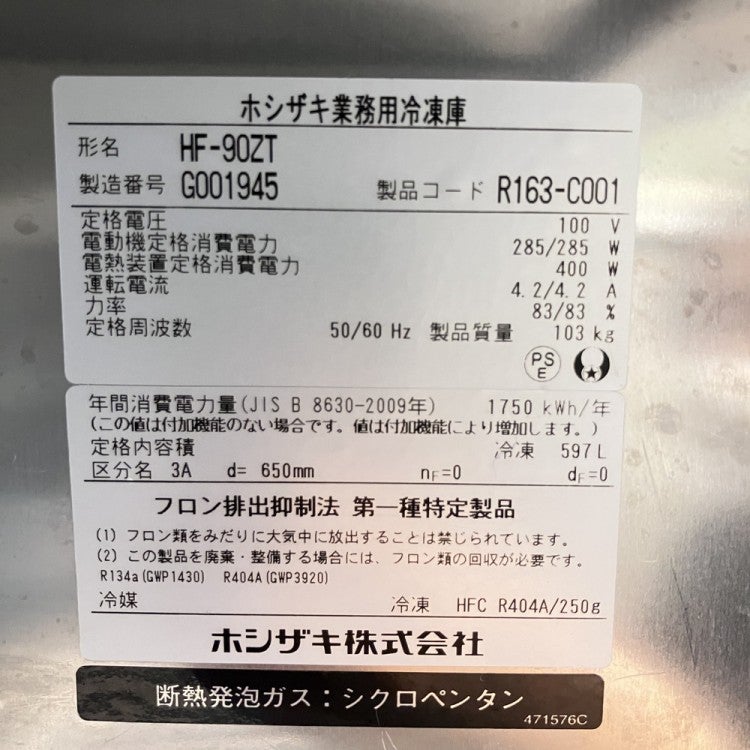 他の画像を見る 2017年製 ホシザキ 縦型冷凍庫 HF-90ZT 東京足立店 中古品 単相100V 定価 ¥ 1,255,100 のところ 販売価格 ¥ 117,700 税込 SOLD OUT W900xD650xH1890商品ランク:B 詳細を見る お気に入りに登録する