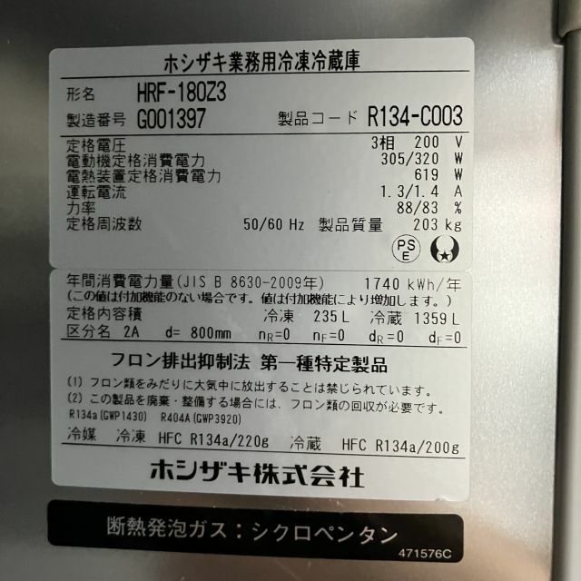 他の画像を見る 2017年製 ホシザキ 縦型冷凍冷蔵庫 HRF-180Z3 大阪店 中古品 三相200V 定価 ¥ 1,610,400 のところ 販売価格 ¥ 156,200 税込 SOLD OUT W1800xD800xH1890商品ランク:B 詳細を見る お気に入りに登録する