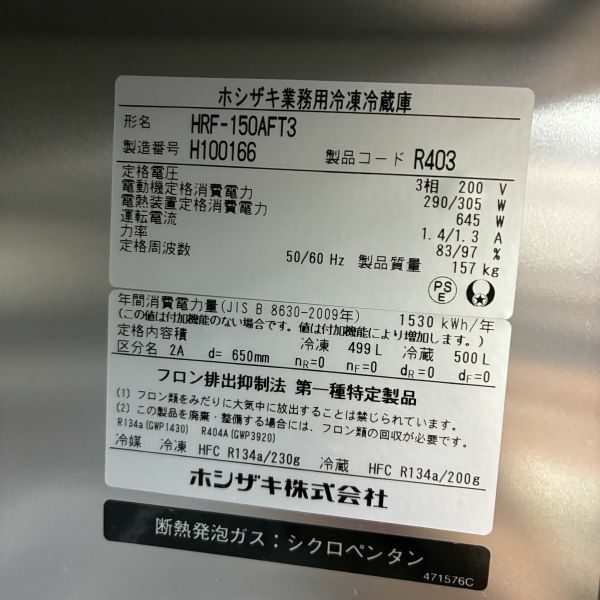 他の画像を見る 2018年製 ホシザキ 縦型冷凍冷蔵庫 HRF-150AFT3 大阪店 中古品 三相200V 定価 ¥ 1,677,500 のところ 販売価格 ¥ 149,600 税込 W1500xD650xH1910商品ランク:B カートに入れる お気に入りに登録する