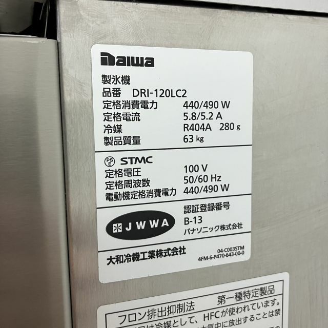 他の画像を見る 2022年製 大和冷機 120kgチップアイスメーカー DRI-120LC2 大阪店 中古品 単相100V 販売価格 ¥ 198,000 税込 W600xD600xH800商品ランク:A カートに入れる お気に入りに登録する