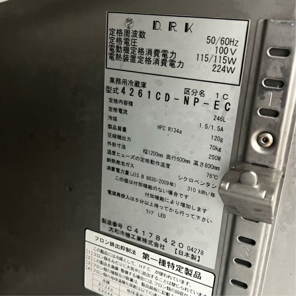 他の画像を見る 2018年製 大和冷機 冷蔵コールドテーブル 4261CD-NP-EC 東京足立店 中古品 単相100V 販売価格 ¥ 99,000 税込 W1200xD600xH800商品ランク:B カートに入れる お気に入りに登録する