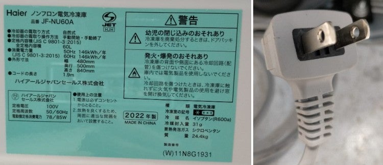 他の画像を見る 2022年製 ハイアール 冷凍ストッカー JF-NU60A 東京町田店 中古品 単相100V 販売価格 ¥ 16,500 税込 W480xD500xH825商品ランク:C カートに入れる お気に入りに登録する