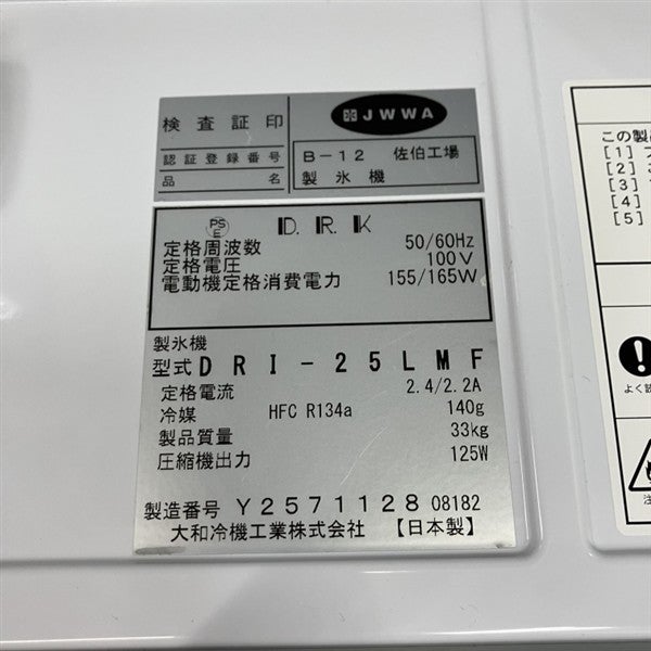 他の画像を見る 2022年製 大和冷機 25kg製氷機 DRI-25LMF 大阪店 中古品 単相100V 販売価格 ¥ 139,700 税込 W395xD450xH770商品ランク:B カートに入れる お気に入りに登録する