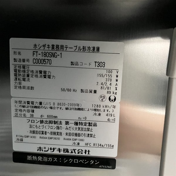 他の画像を見る 2023年製 ホシザキ 冷凍コールドテーブル FT-180SNG-1 大阪店 中古品 単相100V 定価 ¥ 1,387,100 のところ 販売価格 ¥ 198,000 税込 W1800xD600xH800商品ランク:B カートに入れる お気に入りに登録する