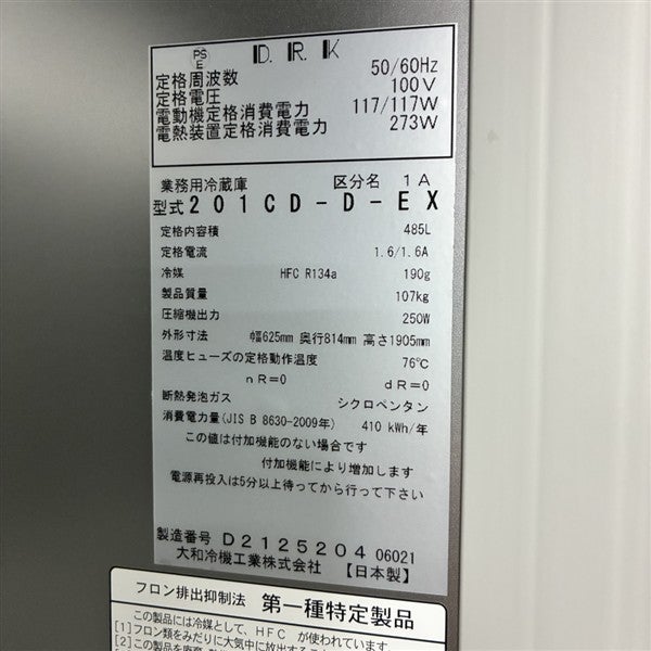 他の画像を見る 2021年製 大和冷機 両開き扉縦型冷蔵庫 201CD-D-EX 大阪店 中古品 単相100V 定価 ¥ 1,087,900 のところ 販売価格 ¥ 143,000 税込 W625xD814xH1905商品ランク:B カートに入れる お気に入りに登録する
