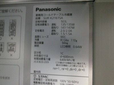 他の画像を見る 2020年製 パナソニック 冷蔵コールドテーブル SUR-K2161SA 愛知店 中古品 単相100V 定価 ¥ 882,200 のところ 販売価格 ¥ 115,500 税込 SOLD OUT W2100xD600xH800商品ランク:B 詳細を見る お気に入りに登録する