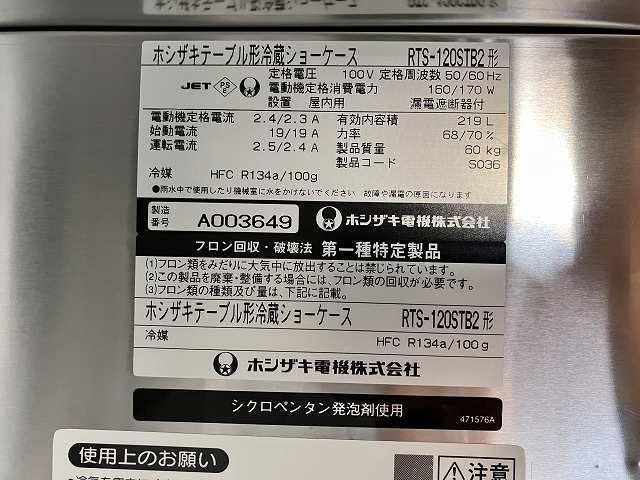 他の画像を見る 2018年製 ホシザキ テーブル形冷蔵ショーケース RTS-120STB2 東京町田店 中古品 単相100V 販売価格 ¥ 82,500 税込 SOLD OUT W1200xD450xH800商品ランク:B 詳細を見る お気に入りに登録する