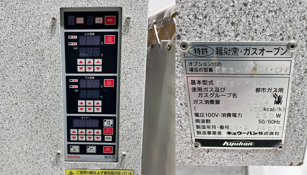 他の画像を見る 2014年製 キュウーハン ガスデッキオーブン EK-642T・CFF 東京町田店 中古品 単相100V 販売価格 ¥ 693,000 税込 W1520xD1010xH1700商品ランク:B カートに入れる お気に入りに登録する