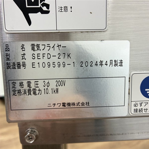 他の画像を見る 2024年製 ニチワ 電気フライヤー SEFD-27K 大阪店 中古品 三相200V 販売価格 ¥ 193,600 税込 W650xD600xH800商品ランク:A カートに入れる お気に入りに登録する