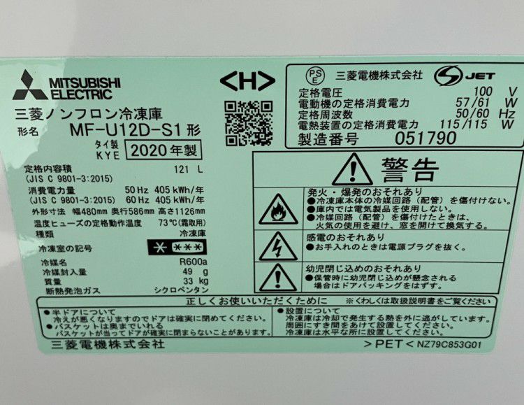他の画像を見る 2020年製 三菱電機 冷凍ストッカー MF-U12D-S1 東京町田店 中古品 単相100V 販売価格 ¥ 19,800 税込 W480xD586xH1125商品ランク:B カートに入れる お気に入りに登録する