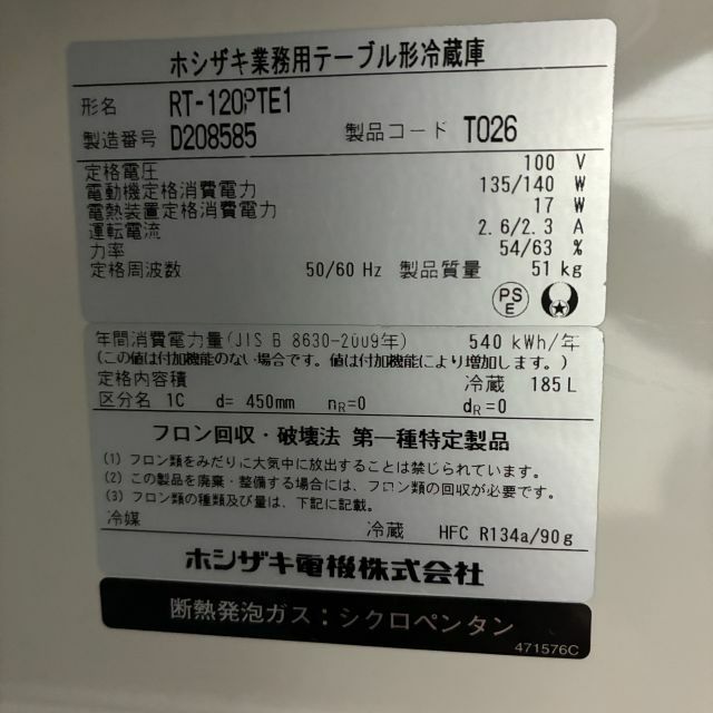 他の画像を見る 2023年製 ホシザキ 冷蔵コールドテーブル RT-115MTCG 東京足立店 中古品 単相100V 定価 ¥ 535,700 のところ 販売価格 ¥ 90,200 税込 SOLD OUT W1150xD450xH800商品ランク:A 詳細を見る お気に入りに登録する
