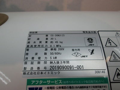 他の画像を見る 2019年製 日本イトミック 小型電気温水器 ES-30N3(2) 愛知店 中古品 単相200V 販売価格 ¥ 49,500 税込 W745xD328xH472商品ランク:B カートに入れる お気に入りに登録する
