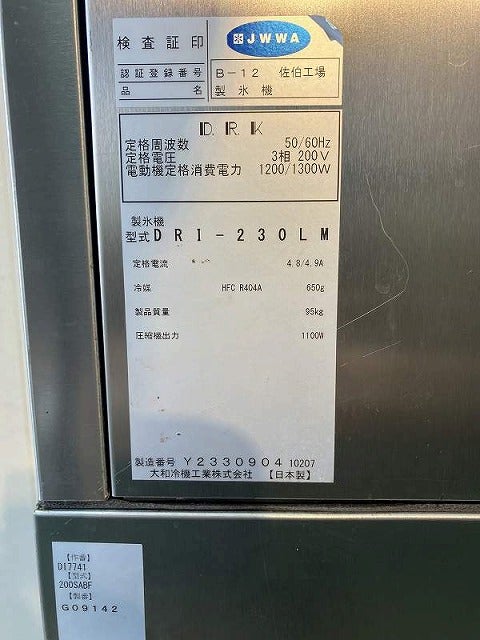 他の画像を見る 2017年製 大和冷機 230kg製氷機 DRI-230LM 愛知店 中古品 三相200V 販売価格 ¥ 187,000 税込 W700xD680xH1890商品ランク:B カートに入れる お気に入りに登録する